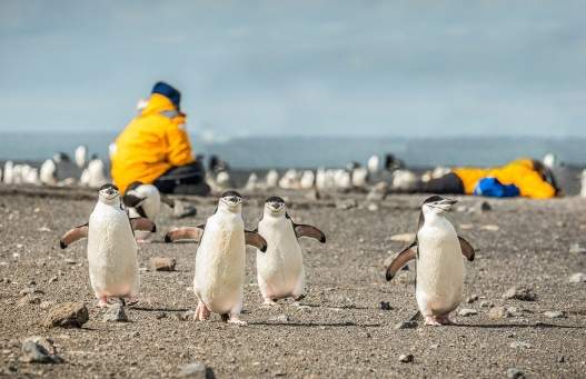 The infamous Drake Passage extends about 1,000 km (600 miles) between Cape Horn, on the tip of South America, and the South Shetland Islands. Crossing the Drake is a rite of passage for polar travelers. The channel, especially when the waves are high, is called the “Drake Shake.” (Conversely, when it’s calm, it earns the nickname “Drake Lake.”) The huge swells that frequently arise in the Drake Passage are the result of cold seawater from the south colliding with the warm seawater from the north, which results in powerful eddies. Crossing the Drake can take up to 48 hours in favourable conditions. Temperatures range from 5°C (41°F) in the north to -3°C (26°F) in the south. A good pair of eyes – or a strong set of binoculars – is handy to spot whales (humpback, orca, minke and fin) and seabirds (albatrosses, petrels, shags, skuas, and gulls) during the crossing.